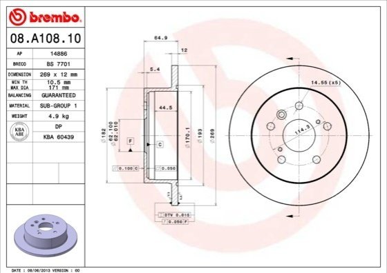 Гальмівні диски 08.A108.10