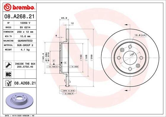 Аналоги "08.A268.21 BREMBO":