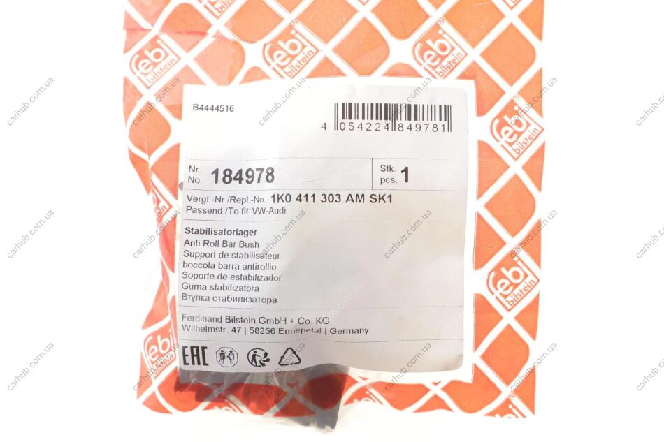 Втулка стабілізатора (переднього) VW Caddy III/IV 04-20 (d=22mm) FEBI BILSTEIN 184978