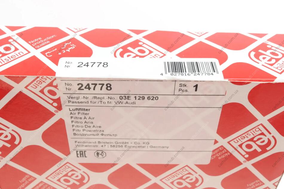 Фільтр повітряний Skoda Fabia 99-08/Roomster 1.2MPI 06-15/VW Polo 1.2 01-09 FEBI BILSTEIN 24778