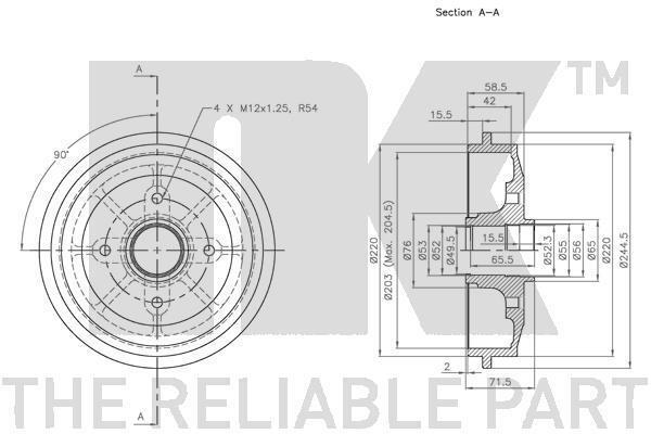 Макс. розмір розточування гальмівного барабана [мм]: 204.5