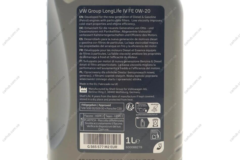 Олива 0W20 LongLife IV (1л) VW 508.00/509.00