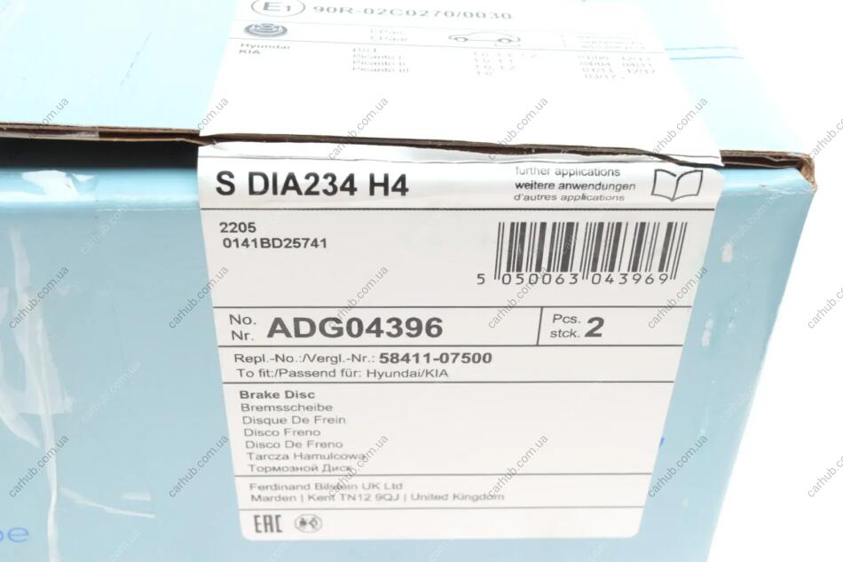 Тормозные диски BLUE PRINT ADG04396
