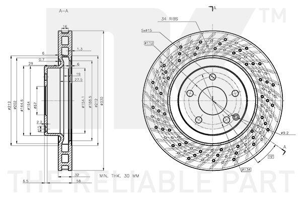 Тип тормозного диска: вентилируемый, с отверстиями
