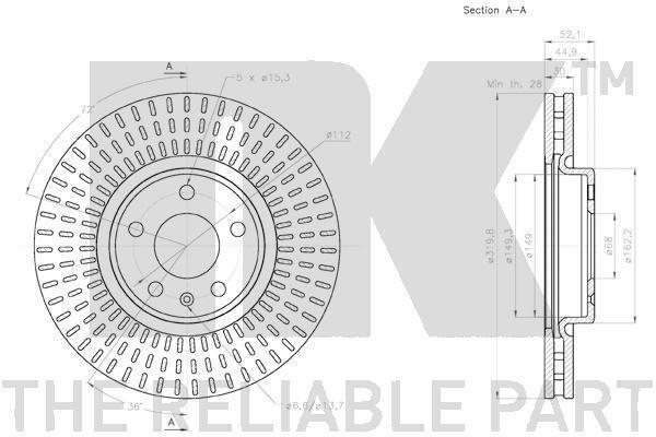 ∅ отверстия [мм]: 15.3