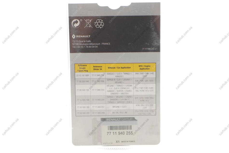 Свечи зажигания 7711940255